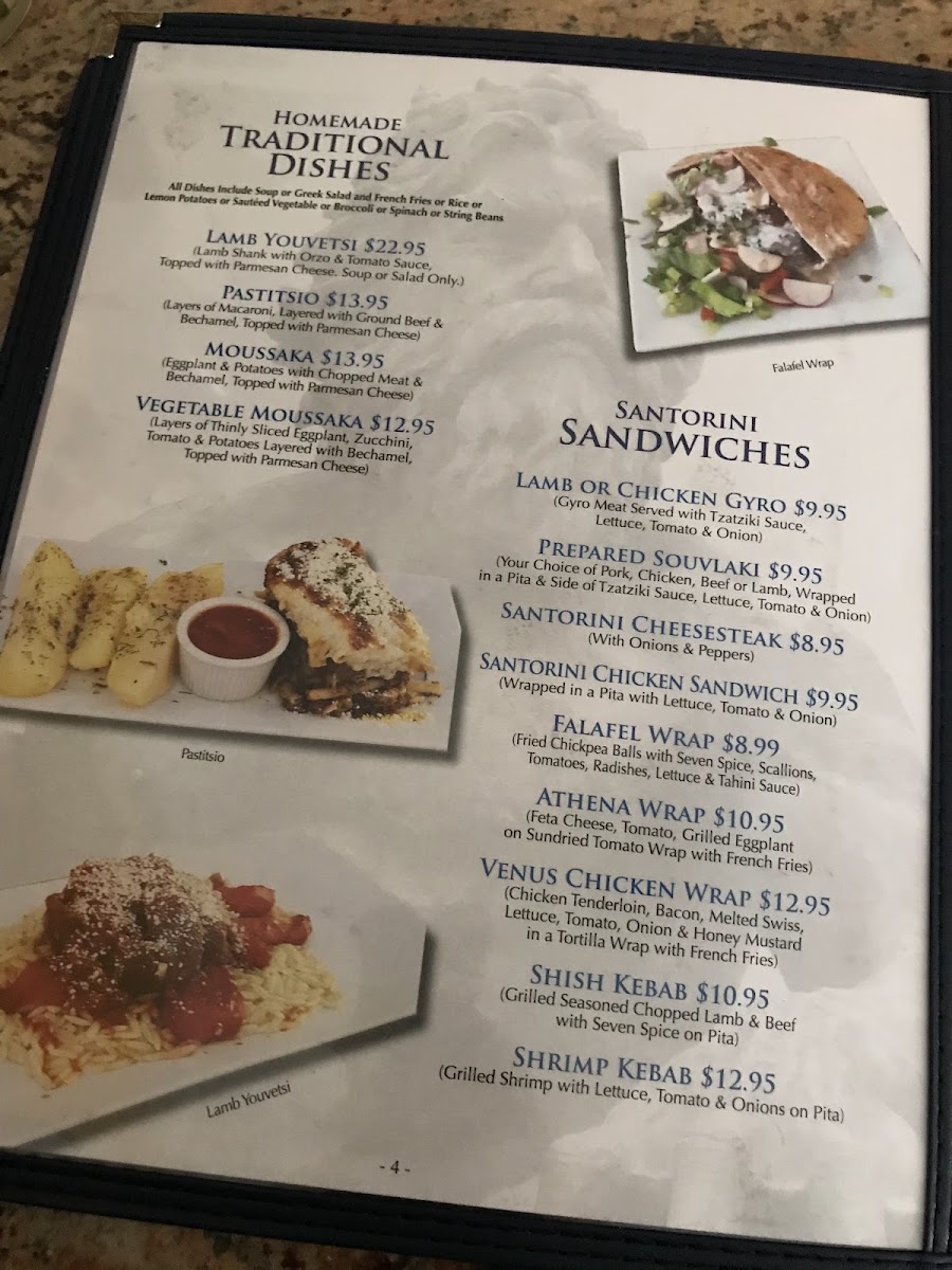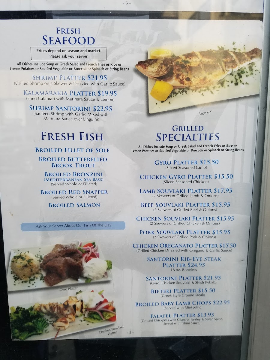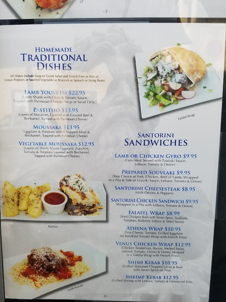 Santorini Greek Restaurant Sleepy Hollow Menu
