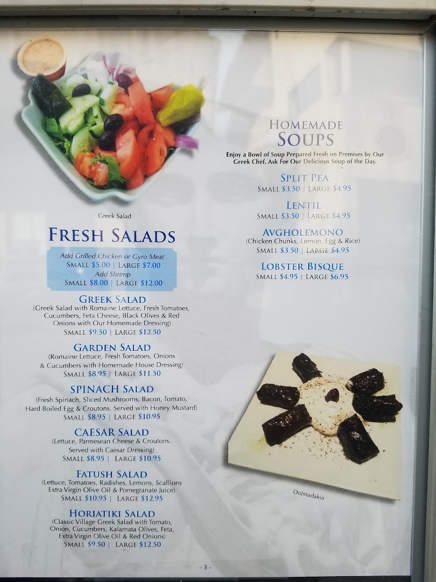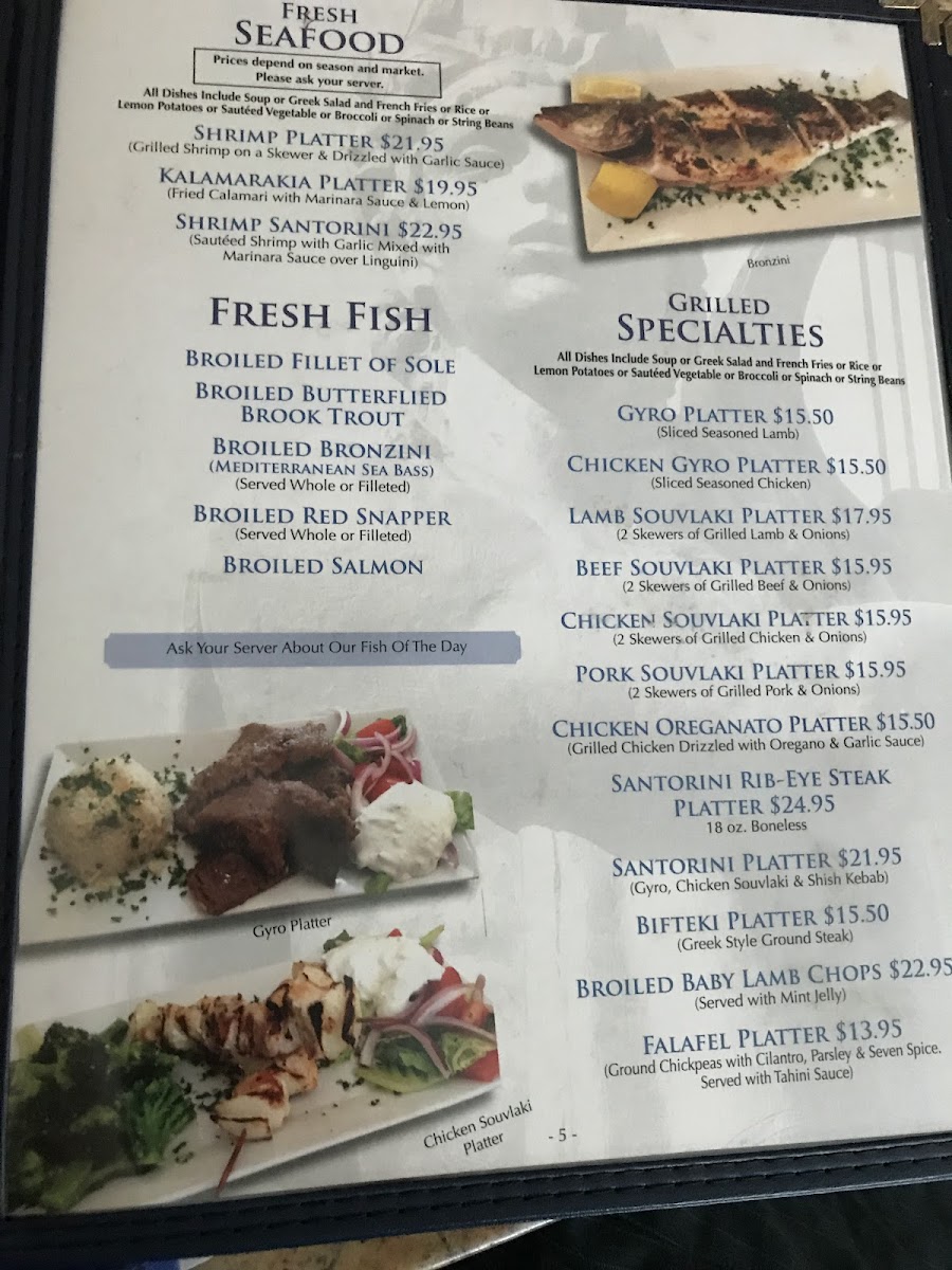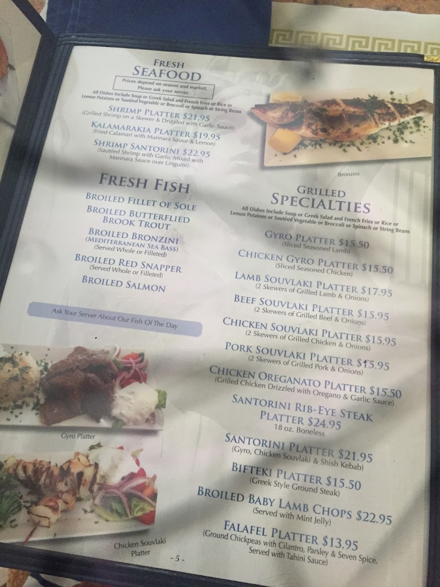 Santorini Greek Restaurant Sleepy Hollow Menu